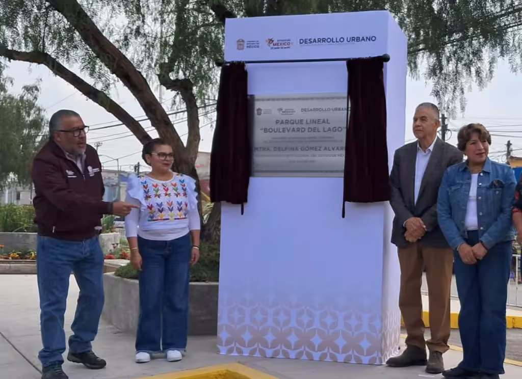 Acolman, Estado de México. La gobernadora del Estado de México, Delfina Gómez Álvarez, y la alcaldesa de Acolman, Blanca Guadalupe Sánchez Osorio, inauguraron el parque lineal del Bulevar del Lago, que divide los fraccionamientos Real del Valle y Terranova, con el objetivo de mejorar la imagen urbana y elevar la calidad de vida de la población.
