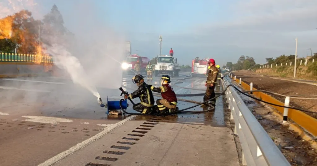 Bomberos de Ecatepec y Tlalnepantla controlaron el derrame del combustible; se cerró la vialidad pa...