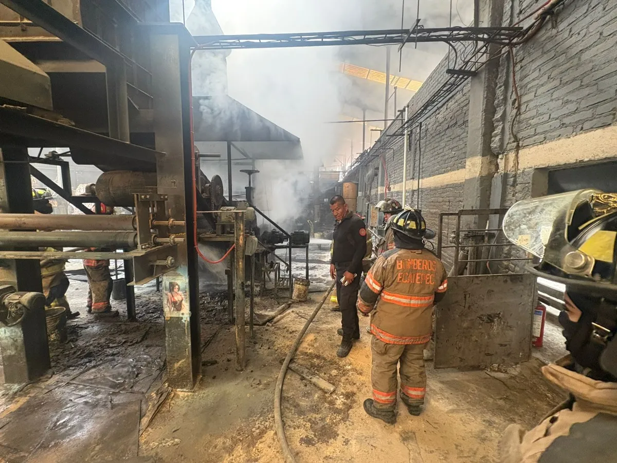 Ecatepec, Estado de México.- Elementos de Bomberos y Rescate Urbano lograron extinguir un incendio ...