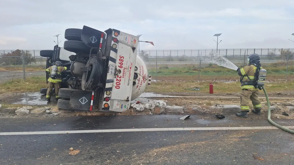 Vuelca pipa de gas en la Peñón-Texcoco; reportan tres lesionados